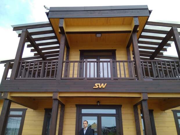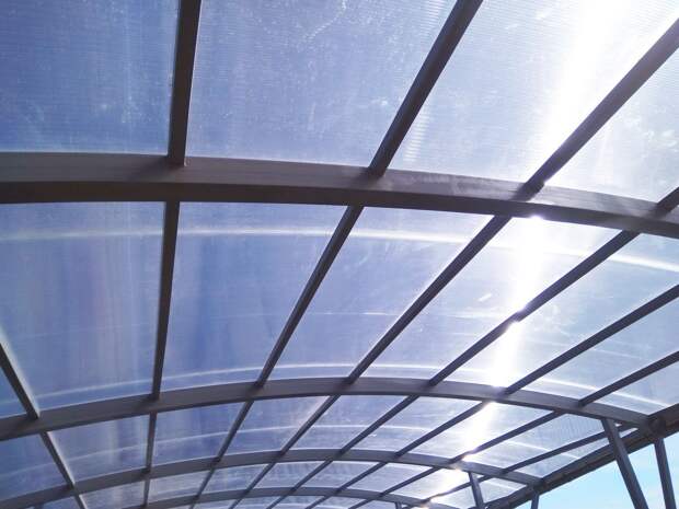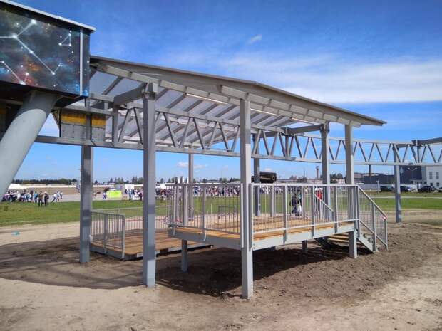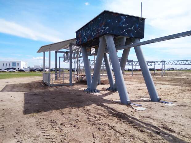 Крыша имеет стреловидную форму, потому опоры разной формы.