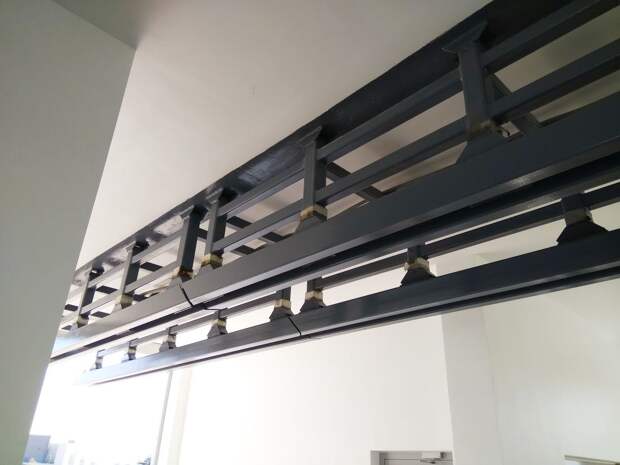 На эти рельсы в будущем будет посажен широкий юнибус. Разрывы рельс находятся уже после анкерного крепления к потолку