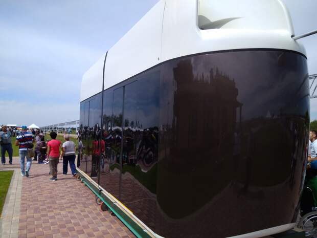 Внутри отделка под космос. Корпус примерно в 1,5 раза шире чем у первого юнибуса.