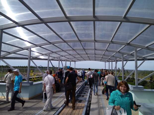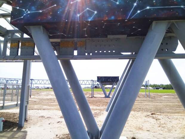 Вид на струнную трассу. В движении по нему наверно похоже на раскрывающийся портал:) Но выглядит ненавязчиво. Углы обзора из лобового окна юнибуса хорошие.