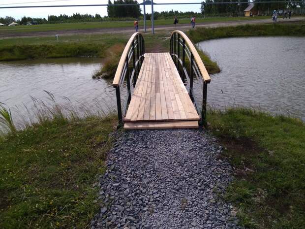 Симпатичный мостик, отделанный сибирской лиственницей.