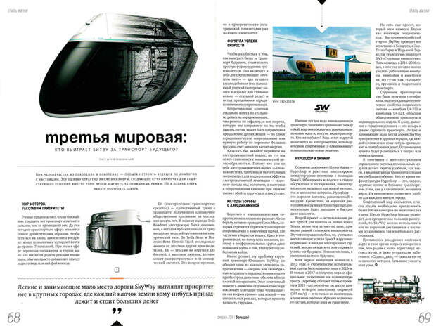 Статья о сравнении Hyperloop и SkyWay опубликована на страницах городского журнала "Большой", который издаётся в Беларуси. Февральский номер издания всецело посвящён технологиям и реалиями нового века, гаджетам, блокчейну, новым терминам и, конечно, ретроспективе старого и нового.